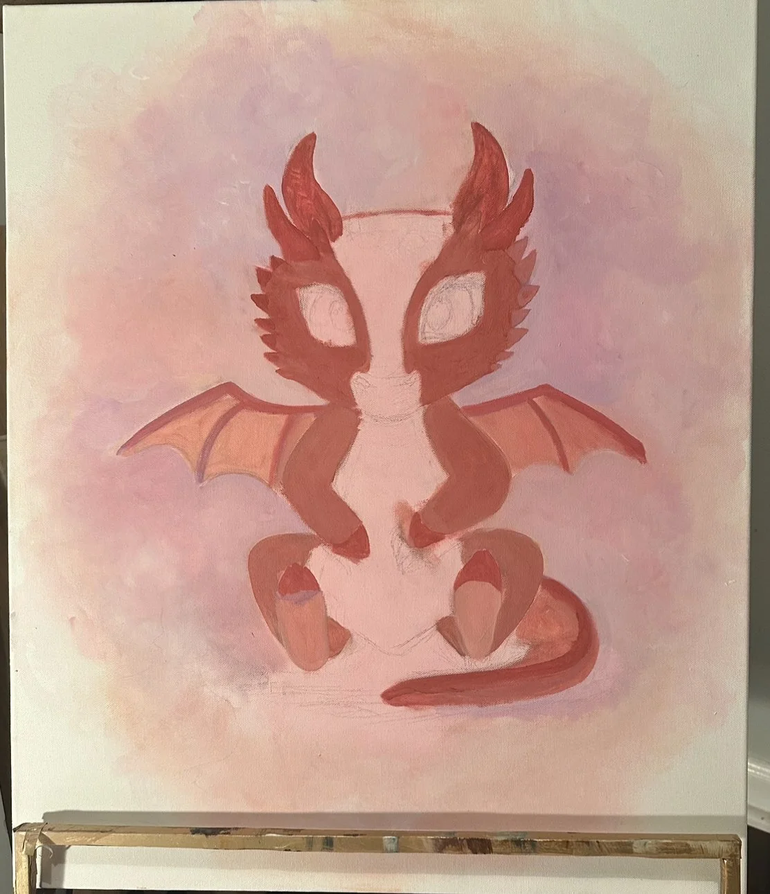 Although I had many brand new, blank canvases to choose from to paint on for Him, I felt a strong pull toward a canvas which had already been painted on - which also happened to be the last painting I did while in addiction, painted in December 2023. I was at the highest amount of drugs I had been on when I painted it - and it was intended to be a baby dragon, but came out looking like a baby devil. This was the canvas I knew He wanted me to use. Not the empty, blank canvases - but the unfinished one. The imperfect one.